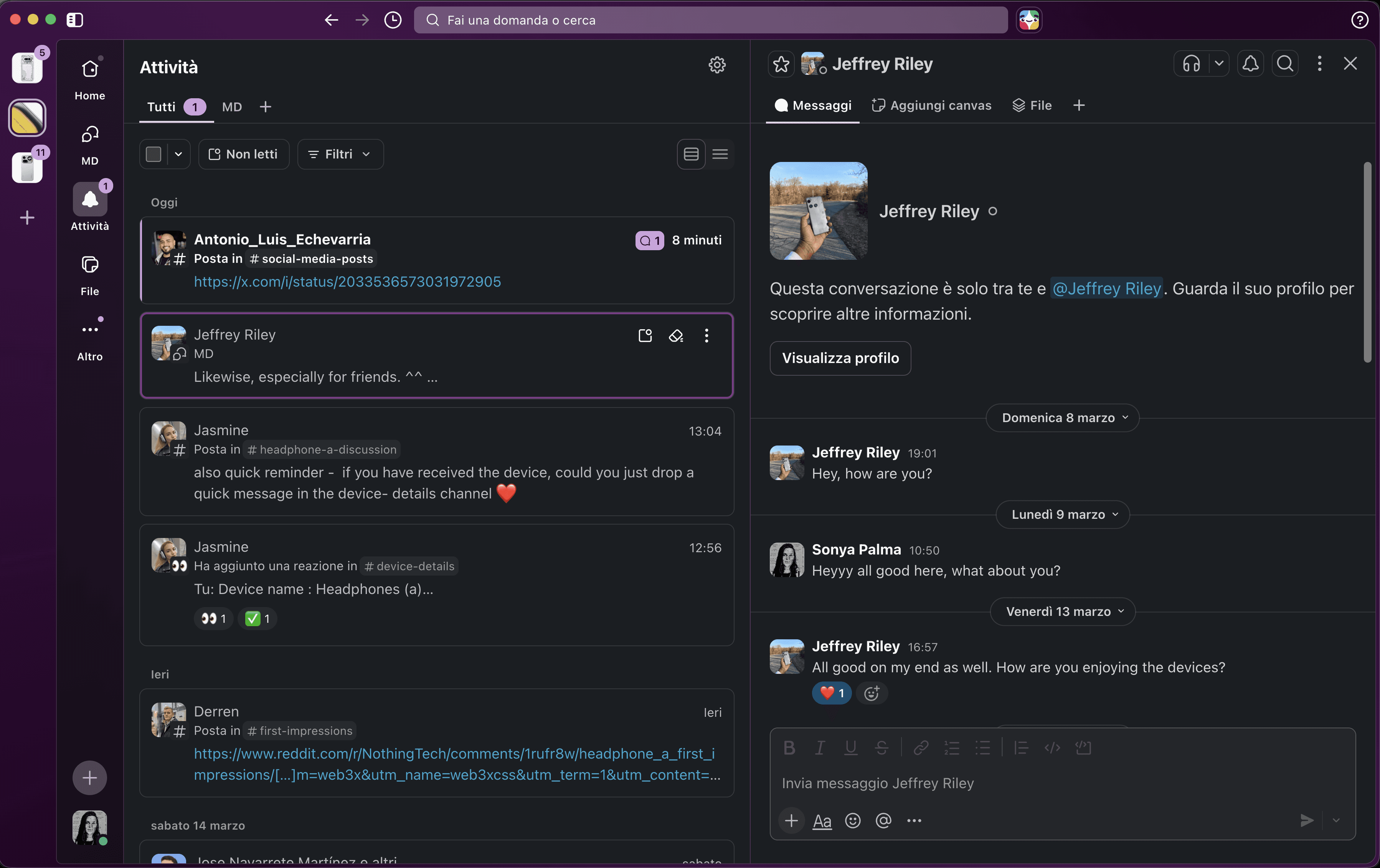 I'm still research, and as the client's focus was different, I had proposed a different navigation bar. Slack also has a similar layout.
